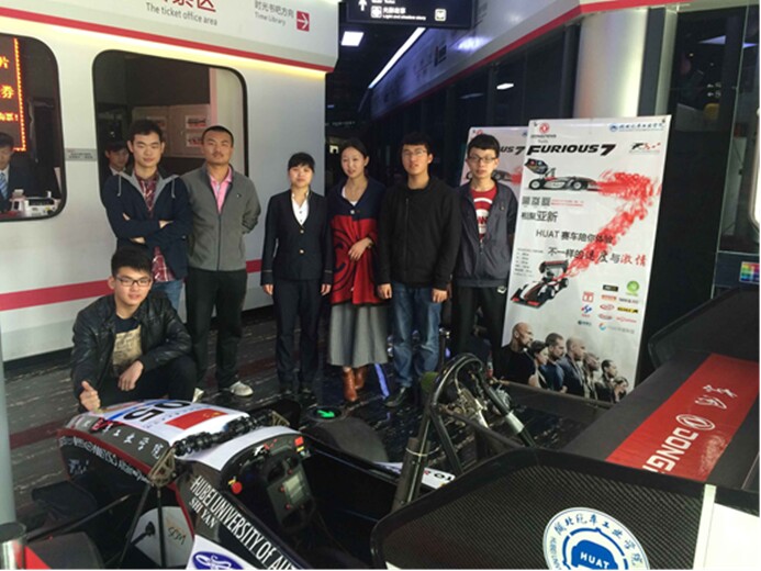 汽车学科特色的影响,应亚新影视传媒的邀请,我院东风HUAT车队来到六堰亚新影城,与前来观影的市民共享赛车盛宴。