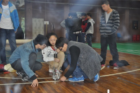 参赛队伍优异成绩的取得,与队员们的刻苦钻研、拼搏努力和辛勤付出是分不开的。本次大赛我院选手在没有先例可以借鉴的情况下,克服一切困难,在老师的指导下通过自己的努力一步一步设计、修改和加工这辆纯机械的无碳“S”型小车。由于没有经验,走了许多弯路,但是面对困难,队员没有轻言放弃,通过大家的辛勤努力,问题都迎刃而解。他们为了梦想和青春,无怨无悔,流血流汗,任何困难都没挡住他们前进的脚步。比赛前的通宵加工设计,比赛中队员们伏案装车调试,趴在地上寻找最合适的发车点,所有的辛酸没有白费。经过大家赛前的无数次模拟和精心准备,在老师的帮助鼓励下,他们在比赛中战胜了自己,取得骄人的成绩。