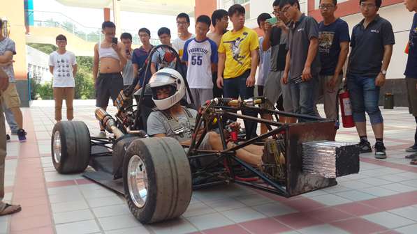 HUAT油车队经过将近一个月夜以继日的努力,2014赛季新车的加工装配终于接近了尾声。虽然时间紧迫,车队仍然是有条不紊的运作着,一步一个脚印,力求在细节上不出差错,争取把每一项工作都做到更好。从最开始车架的焊接、电泳,到发动机的安装,进排气管的加工,电路的连接到最后整车的总装,队员们都全身心的投入其中,大多数睡觉的时间都用来加工零件,工作室总是不分昼夜的灯火通明,但这丝毫不影响队员们工作的热情。在此期间指导老师邓老师和石老师也经常陪伴在队员们身边,不仅和队员们探讨技术上的问题,而且还对队员们的生活悉心关怀,有时候还陪伴队员们到深夜。