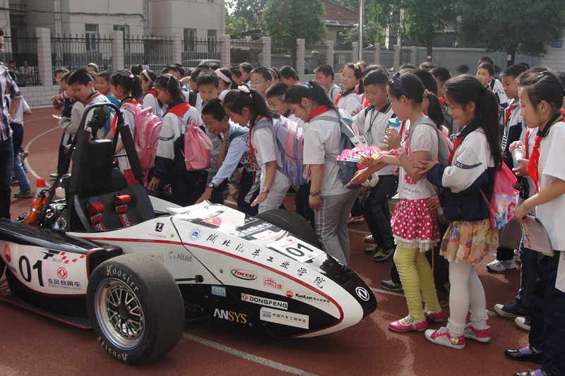 校园突现方程式赛车,引起小学生们极大地兴趣!