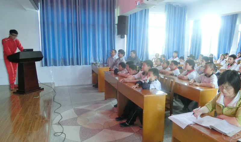 5月20日下午,校教务处带领东风HUAT车队携HUAT-3号赛车前往车城西路小学,为小学生做“汽车发展史及新能源汽车”科普讲座,车队车手张帅担任主讲。出席活动的还有张湾科技局和教育局等负责人。