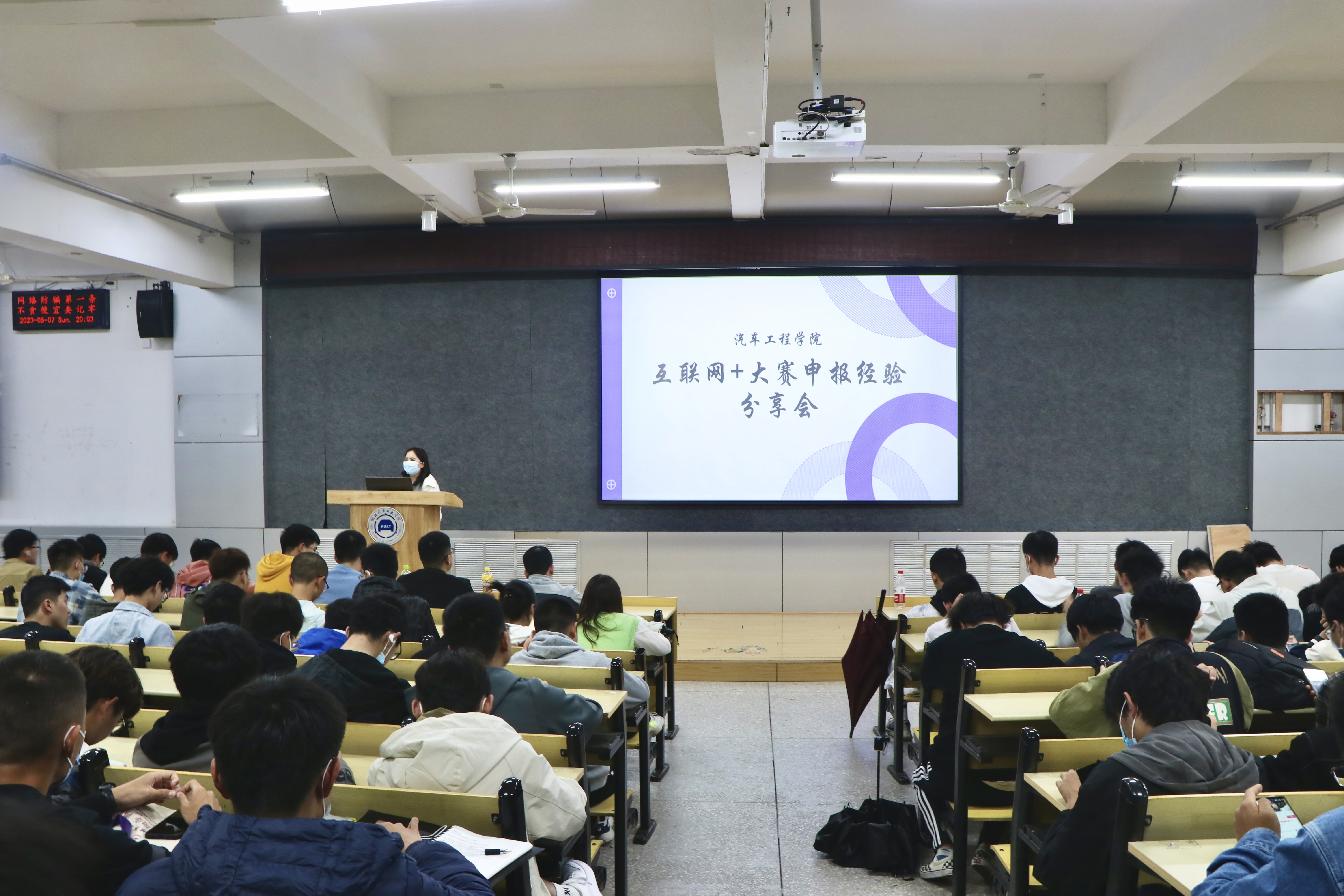于6113教师举办了“互联网+”大赛申报经验分享会。学工办主任胡霄寒与22级全体学生参会。