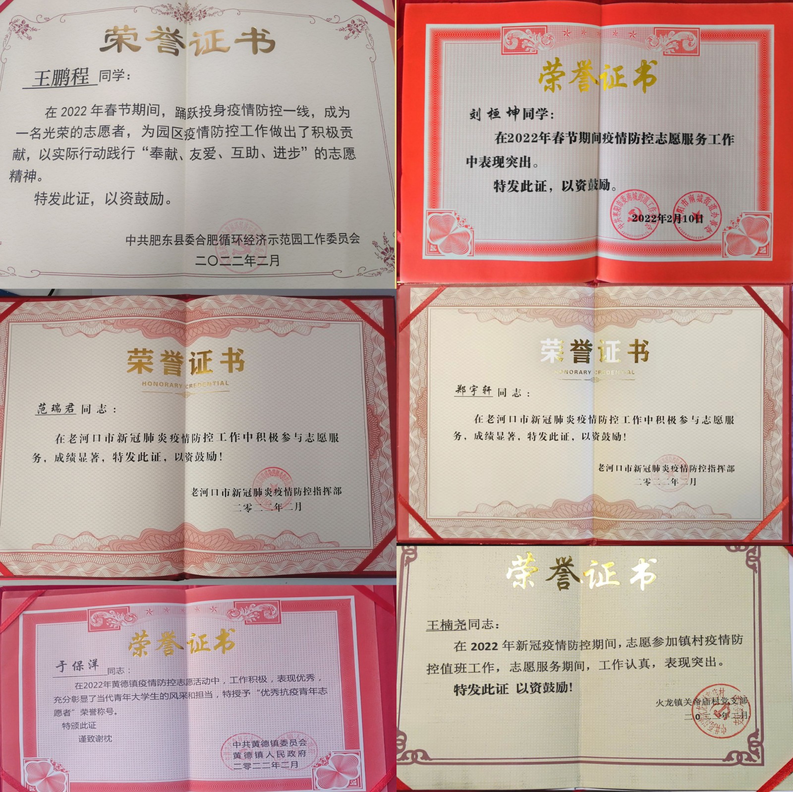此外,十堰市青年志愿者协会、湖北老河口市防疫指挥中心等组织也对我院积极号召返乡大学生参与寒假抗疫志愿者活动表示感谢,肯定了学院平日对学生的悉心教导和思想引领工作成效。