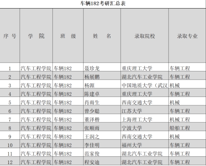 车辆工程182班在2022届全国硕士研究生招生考试中取得优异成绩,班级总人数40人,总录取人数为12人。一起来看看这个学霸班的青春故事吧!