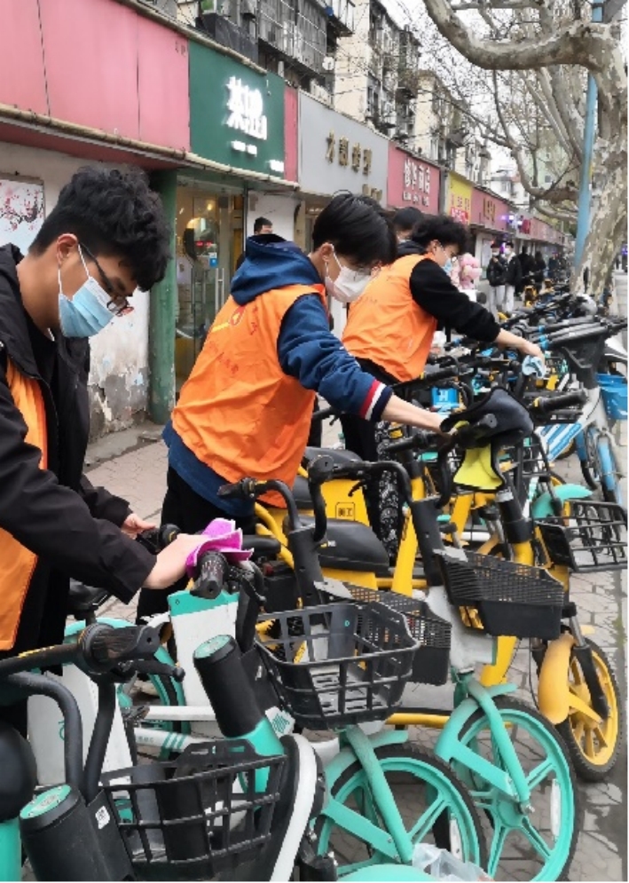 主动参加志愿者活动,如李家湾小学支教、十堰市火车站开展志愿活动、共享单车志愿服务。