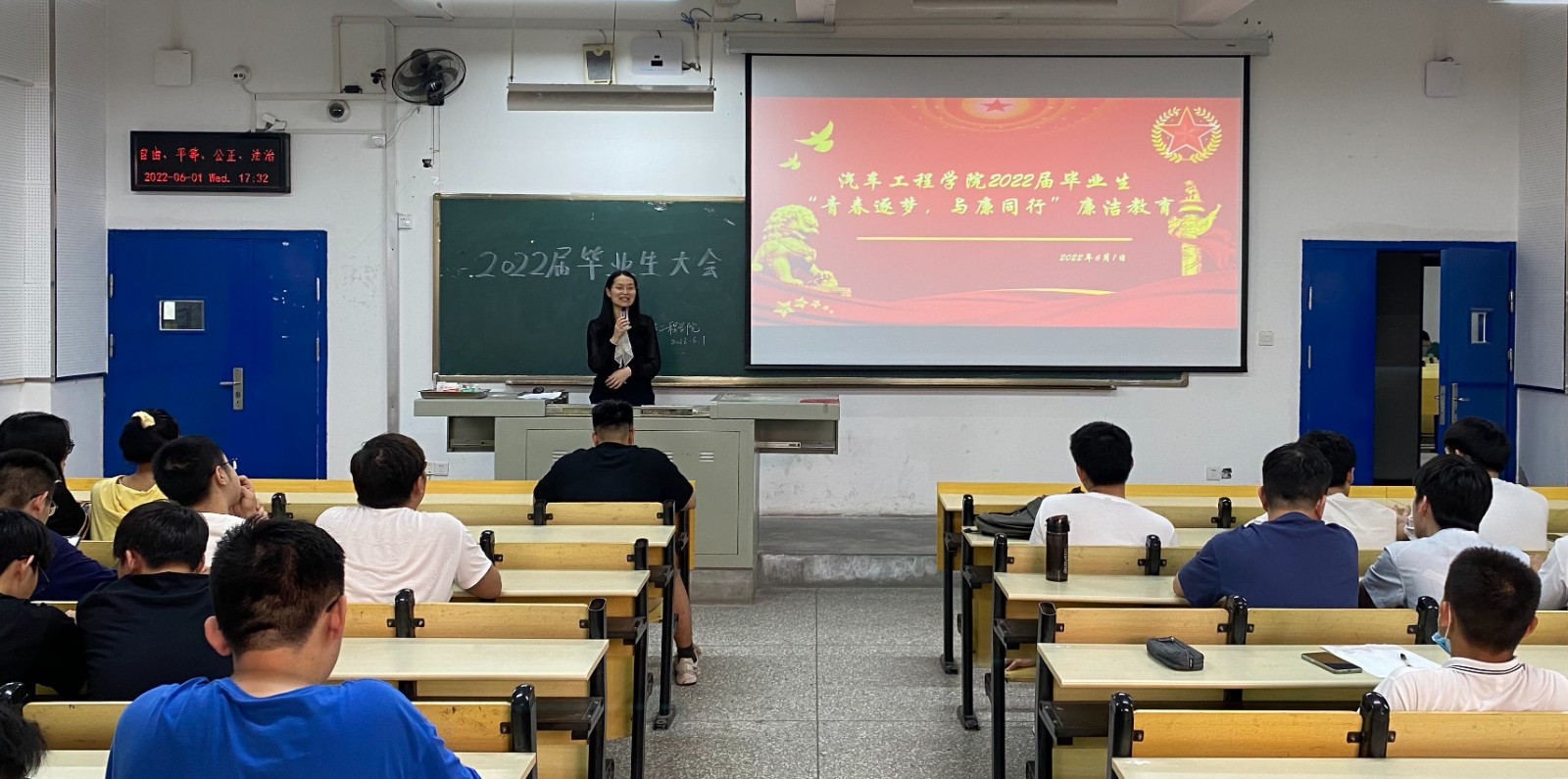 6月1日下午,分党委副书记杜昕俊在6206教室,为本部的毕业生们做了以“青春逐梦、与廉同行”的廉洁主题教育。她简单介绍了“清廉车院”工作开展的情况,结合一名年轻干部违纪违法的警示案例,教育毕业生走出校园在工作岗位上要时刻保持清醒头脑,严格规范自己的一言一行,牢固树立纪法意识,既扛得起责任,更挡得住诱惑。她对全体毕业生提出要坚守一份初心、做好两手准备、算好人生政治账、经济账和家庭帐的要求,告诫大家要增强廉政意识,提升自我防范意识,提高对非法组织、非法传销、非法中介、“培训贷”的辨别能力。