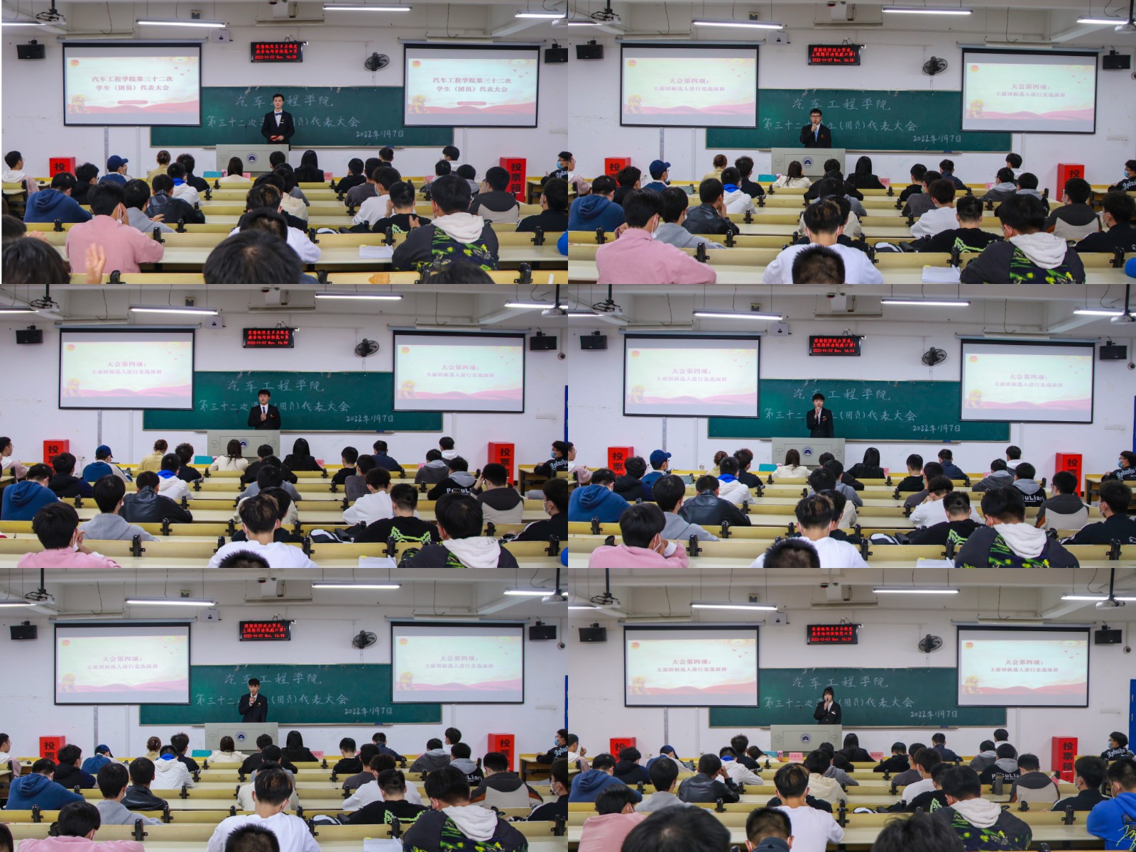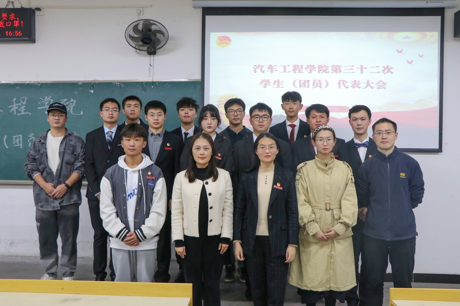 第三十二次学生(团员)代表大会在6211教室顺利召开,分党委副书记杜昕俊、分团委书记李雅琨、辅导员李键雯、李旭,校学生会执行主席覃向波以及各年级学生代表参加了本次大会。大会由车辆203班刘伯通主持。