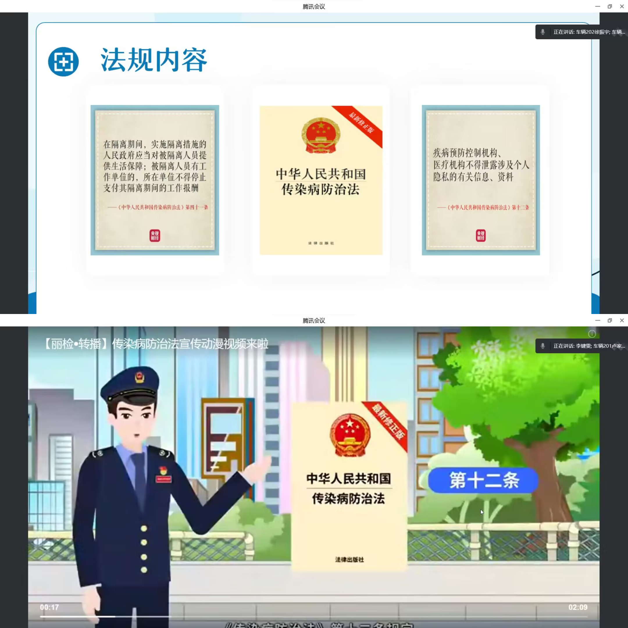 活动伊始,李键雯分别从传染病的类型、传染病的危害几个方面进行了详细讲解,介绍了甲、乙、丙三类传染病的特征,带领参会人员集中学习了《中华人民共和国传染病防治法》,要求其掌握《中华人民共和国传染病防治法》的基本内容,学习传染病的等级种类、预防方法、疫情报告与公布、法律责任等知识。随后,全体学生干部一同观看了相关法律法规的宣传学习视频,同学们纷纷表示一定会重视传染病防治工作,并积极向其他同学科普传染病防治办法及其相关法律责任,对自己和他人的健康负责。