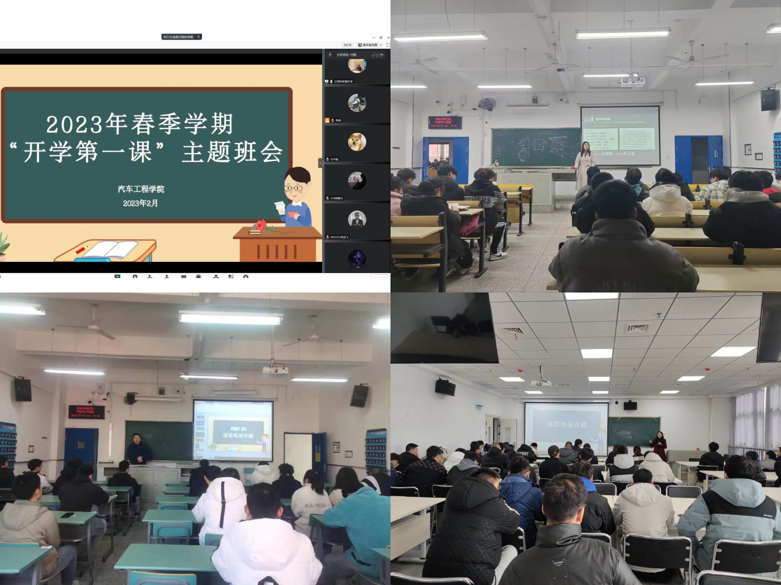 会上,各年级辅导员、各班班主任围绕创建优良学风、预防流行疾病、关爱心理健康、建设平安校园、谨防电信诈骗等五个部分提出了详细的要求。在总结分析了2022年班上每位同学的学习状况和班级综合学风情况后,班主任提醒大家要加强对春季流行性感冒等疾病的预防,保持寝室干净整洁、增强体质积极锻炼,适度适量开展“健康阳光跑”。围绕开学后易发大学生心理健康问题,班主任还对重点人群开展了心理疏导和人文关怀。对于此次主题班会的重点内容防范电信诈骗教育,班主任也结合近期发生的典型案例进行了的宣传教育,组织每一位同学签订了《防范电信网络诈骗承诺书》,同时还对校园交通、宿舍用电等安全问题进行了提醒。