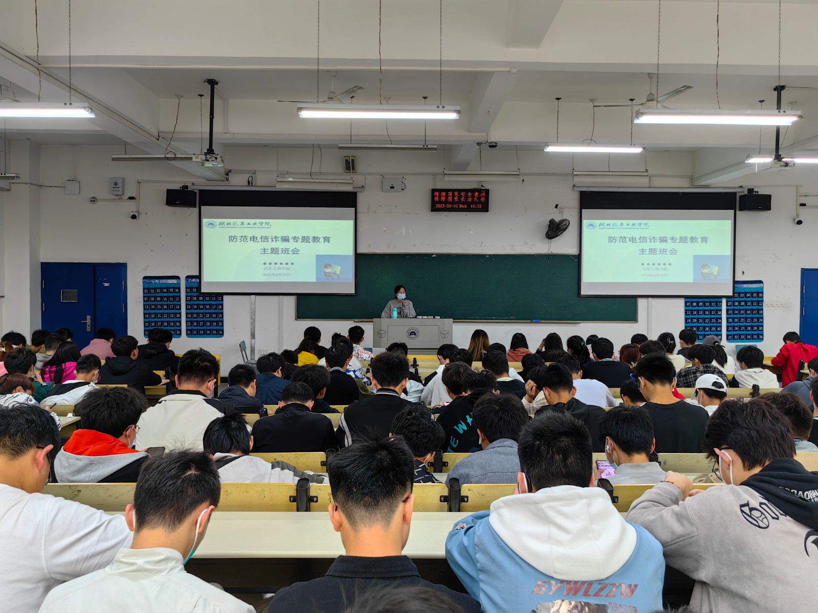 会上,各年级辅导员结合当前电信网络诈骗频发、高发的典型案例,从诈骗的手段、形式、特点、危害及有效防范措施进行讲解。随后,组织学生学习什么是帮助信息网络犯罪和涉“两卡(电话卡、银行卡)”典型犯罪案例,教育引导学生认清涉“两卡”犯罪的常见伎俩与套路,普及“帮信罪”相关法律常识,帮助学生树牢法律意识,守住行为边界,打好“法治预防针”。并严格要求学生遵守国家法律、法规,不参与不帮助电信网络诈骗犯罪活动,不随意出租、出借、出售本人名下电话卡、银行卡、支付宝、微信等给他人使用,自觉远离和抵制涉“两卡”犯罪等违法犯罪活动。最后,为有效预防流行疾病的传染,提醒同学们做好个人防护,佩戴口罩出入校园。