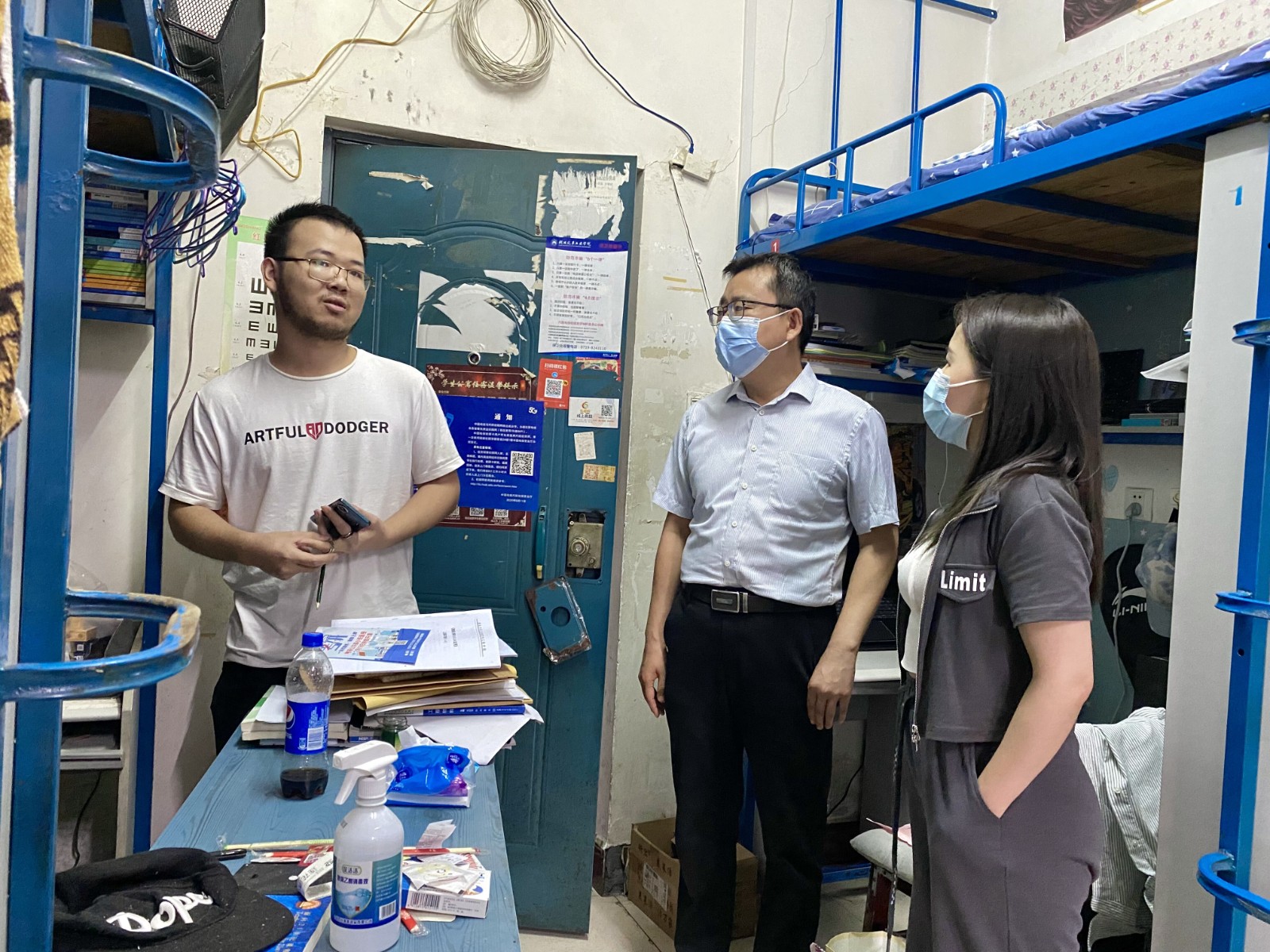 分党委书记杨亚会深入学生宿舍开展专题调研,学工办全体辅导员陪同调研。