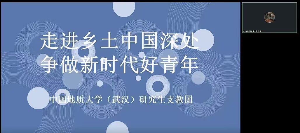 通过线上方式举行了暑期“三下乡”社会实践经验分享会。本次活动邀请到了团十九大代表、中国地质大学(武汉)第24届研究生支教团湖北队队长刘亚旭作经验分享,全体立项团队成员参加了本次活动。