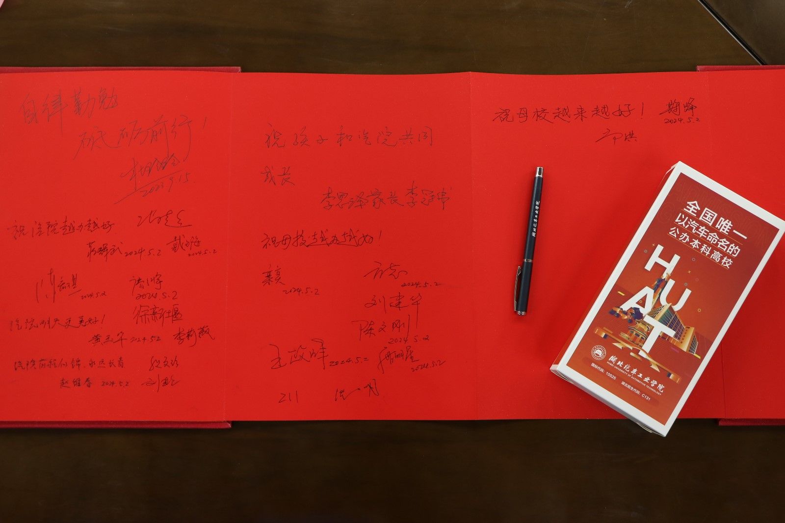 校友们纷纷发言,在红色签字簿上写下了对母校的真挚祝福,表示不论身在何地,将始终与母校根脉相连,共同维护汽院大家庭的温暖和荣耀,未来也将不遗余力为母校建设发展出谋划策,携手推进母校各项事业行稳致远。