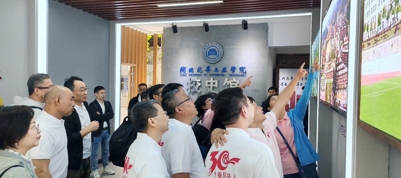 在校史馆中,校友们在泛黄的老照片前驻足许久,争相寻找自己当年的宿舍和教学楼所在位置,共同追忆那段留在汽院的求学岁月和奋斗拼搏的青春年华,并集体前往该班校友在毕业20周年返校时为母校赠送的“青春”石头前合影留恋。