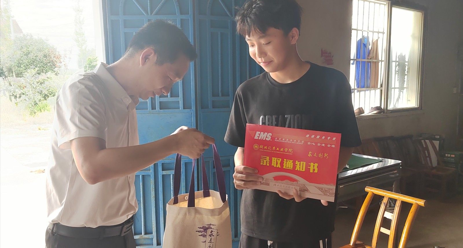 赵华扬的爷爷是一位在基层工作多年的村干部,对学校这一温馨举动表示了高度的赞扬和感谢。他感慨地说道,“这么大热天,学校领导跑几百公里亲自送通知书上门,还准备了这么多贴心的礼物,让我们全家都感到非常荣幸和温暖。我们家一定会全力支持赵华扬的学业和生活。也希望学院能继续关注赵华扬的成长,多给他一些锻炼和挑战的机会,让他早日成为一个对国家、对社会有用的人。”