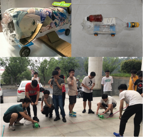 本次气动小车比赛共吸引车院23级的19支队伍,100余名同学参赛。气动小车是选手们以2L塑料瓶为车身,进行不同的组装与设计,通过优化气动装置,使小车获得前进的动力,并不断调试以达到最佳状态。