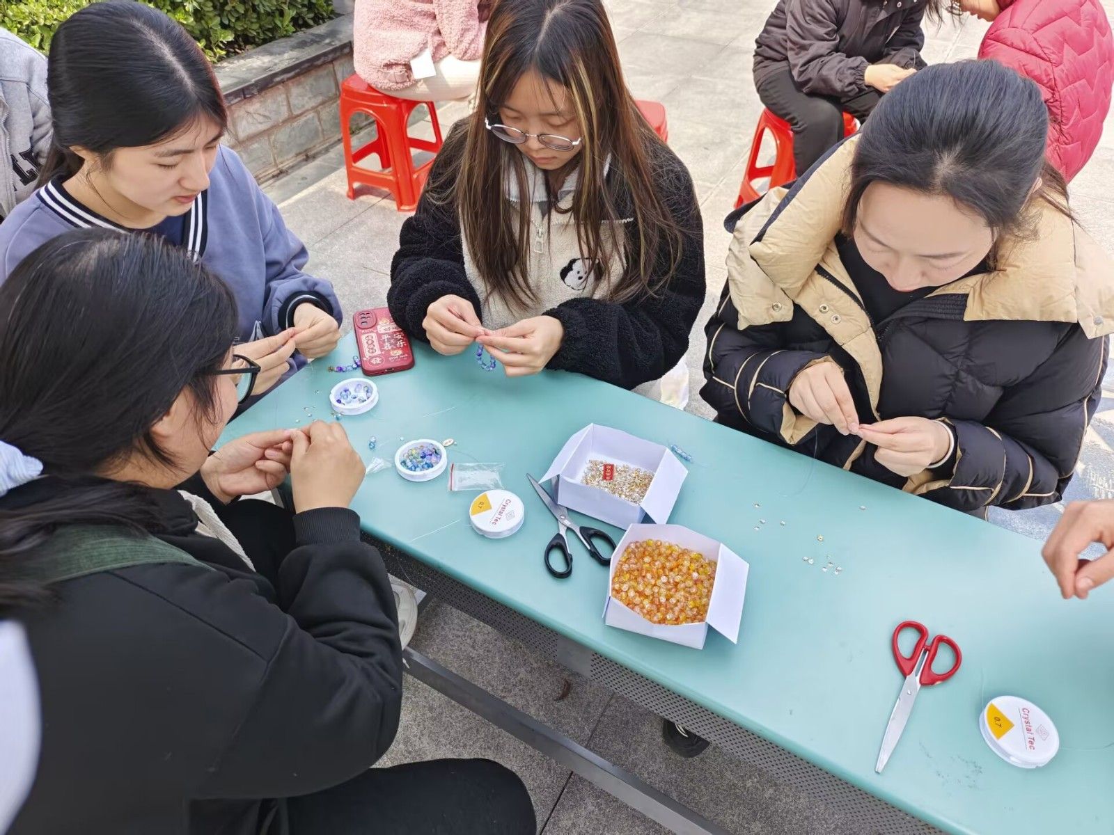 在汽车文化广场成功举办了“珠联非遗,心链共鸣”主题活动。通过传统串珠技艺体验,让更多学子在指尖体验中感受传统文化的魅力,同时舒缓压力、疗愈心灵。