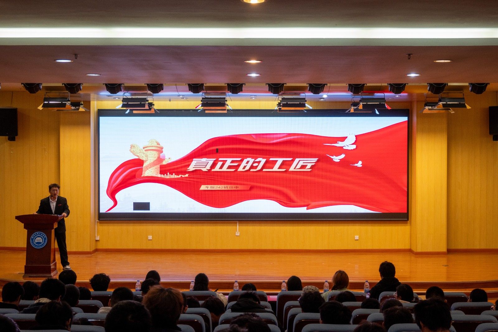 比赛现场气氛热烈,选手们用激昂的语调、生动的事例深刻诠释了工匠精神的丰富内涵,并从多个维度展现了对工匠精神传承的独到见解。他们的精彩演讲不仅深深打动了在场的评委及观众,更呈现了一场视听与思想并重的盛宴,使工匠精神更加深入人心。经过紧张激烈的角逐,最终评选出:车服242班田申荣获一等奖;NEV243班蔚金良和车辆248班朱锦坤荣获二等奖;车辆241班廖寒冰、车辆246班石霄以及NEV241班陈弈文荣获三等奖。