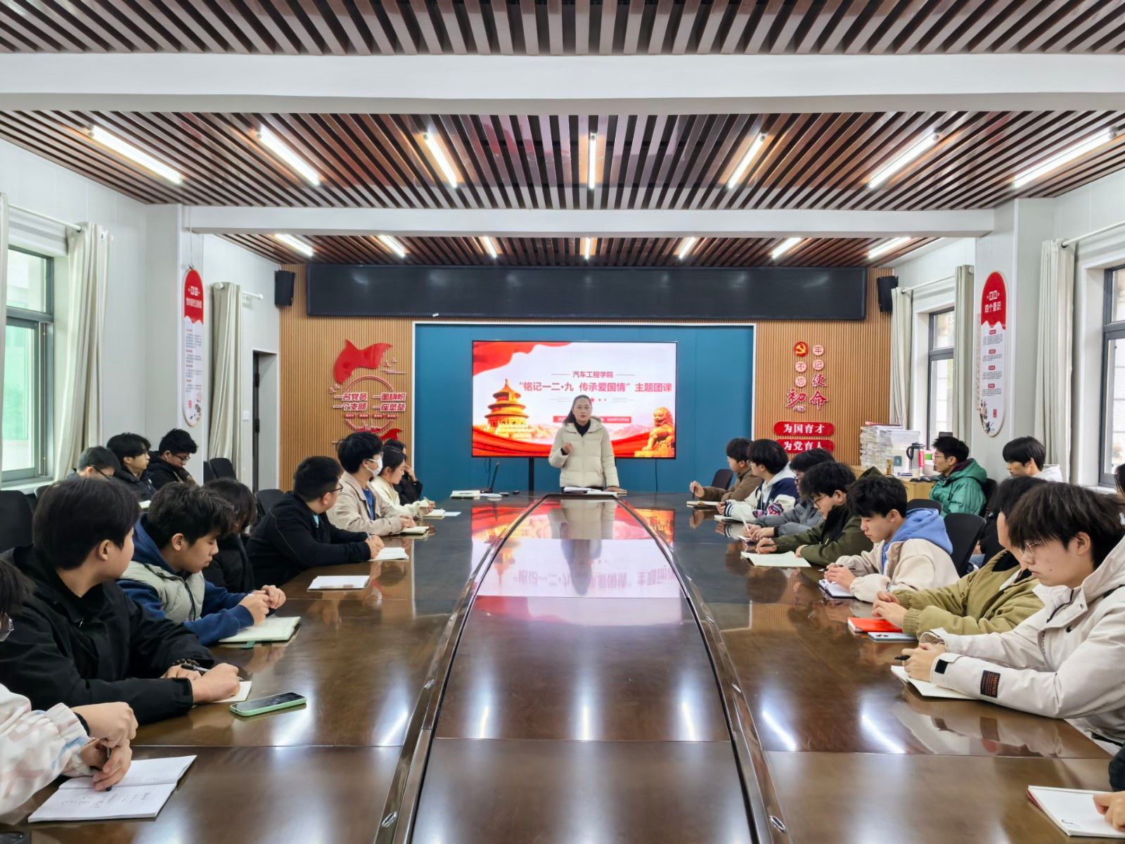 最后,李雅琨为全体人员讲授“铭记一二·九,传承爱国情”主题团课。她通过阐述“一二·九”运动的历史意义和精神内涵,引导同学们深入思考作为新时代青年的责任和使命。她强调,新时代的青年大学生应当铭记历史,坚定理想信念,勤奋学习勇于担当,积极弘扬民族文化,为实现中华民族伟大复兴贡献青春力量。(审稿 周彬)