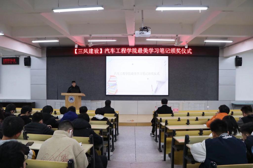 活动主持人首先向同学们展示了参评笔记的照片,所展出的学习笔记记录详实、行笔优美,引得同学们纷纷称赞。随后,邱天宇为来自车辆201班的丁潘等13名获奖同学颁奖;丁潘同学在现场分享了自己撰写学习笔记来辅助课程学习的宝贵经验。