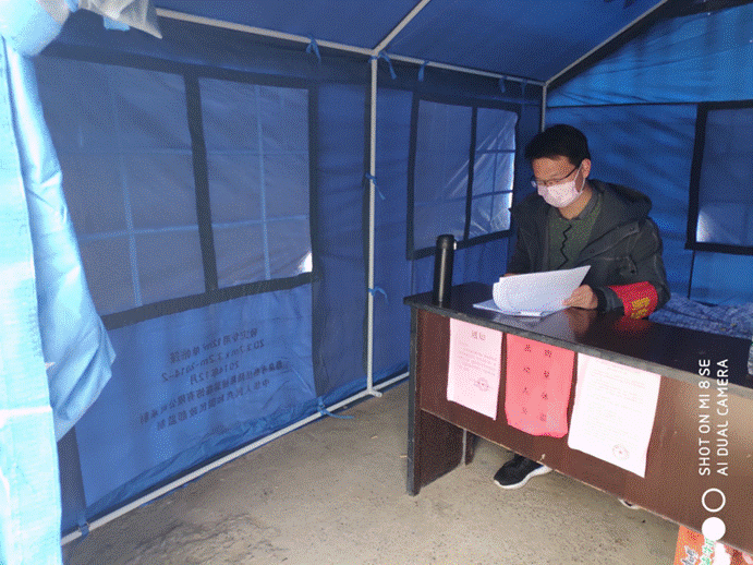 为了确保活动顺利进行,小火柴们采用电话连线的方式,时刻保持志愿活动的一致性,并且通过短视频、照片记录他们身穿红马甲、带着口罩穿梭在乡村小区的个个角落为居民测量体温、消毒、发放宣传单、进行人员排查登记,为遏制疫情扩散、打赢疫情防控阻击战贡献一份青春的力量。