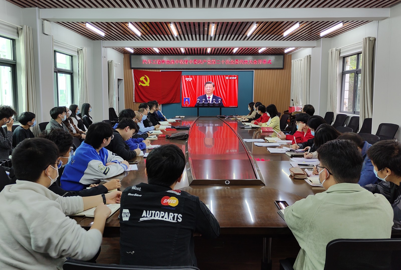 分党委组织全体师生党员在学院二楼会议室召开10月份主题党日活动,并集中收看了中国共产党第二十次全国代表大会开幕会。