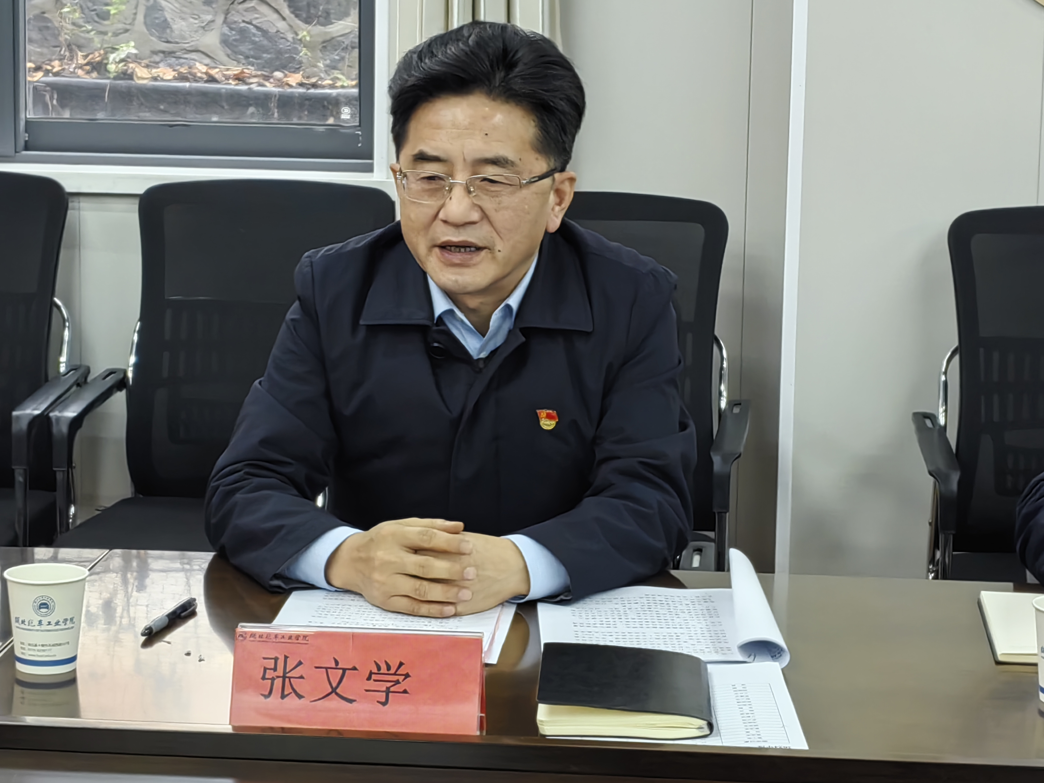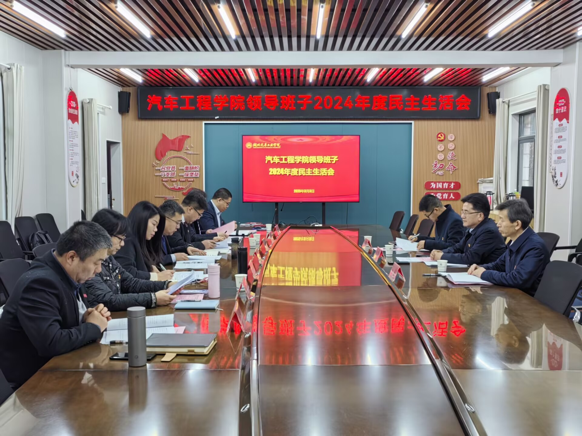 在1201党员活动室召开领导班子2024年度民主生活会。校党委书记张文学、纪委副书记韩晓、组织部副部长李亚洲莅会指导。会议由学院党委书记杨亚会主持。