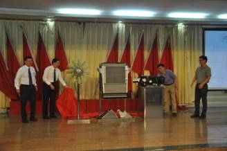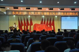 捐赠教学用具的揭幕仪式。韩力总经理表示此次捐赠活动只是校企双方合作的开始,今后东风贝洱公司将在毕业生录用、给学生提供实习机会等方面加大对学校的支持力度。