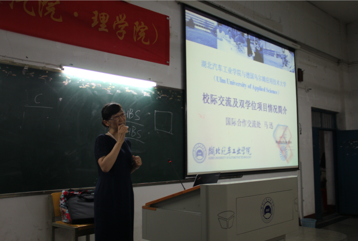 赴德推介会在2101教室举行,国际合作交流处处长马迅在会上为18级新生和家长介绍赴德相关事宜。