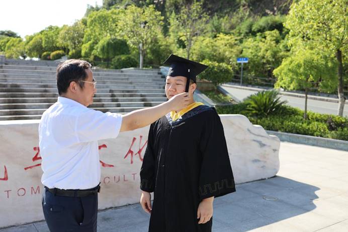 分党委交流“七.一”有关工作安排时,了解到学院第三批返校生因没有赶上6月23日集中的毕业典礼和授位仪式而感到遗憾时,校长立即表态:关爱学生、不给学生留遗憾,给他们补一个!学院立即响应,组织有此心愿的20余名第三批返校生于30日下午在学校汽车文化广场,由钟毓宁校长亲自为他们进行了授位拨穗。