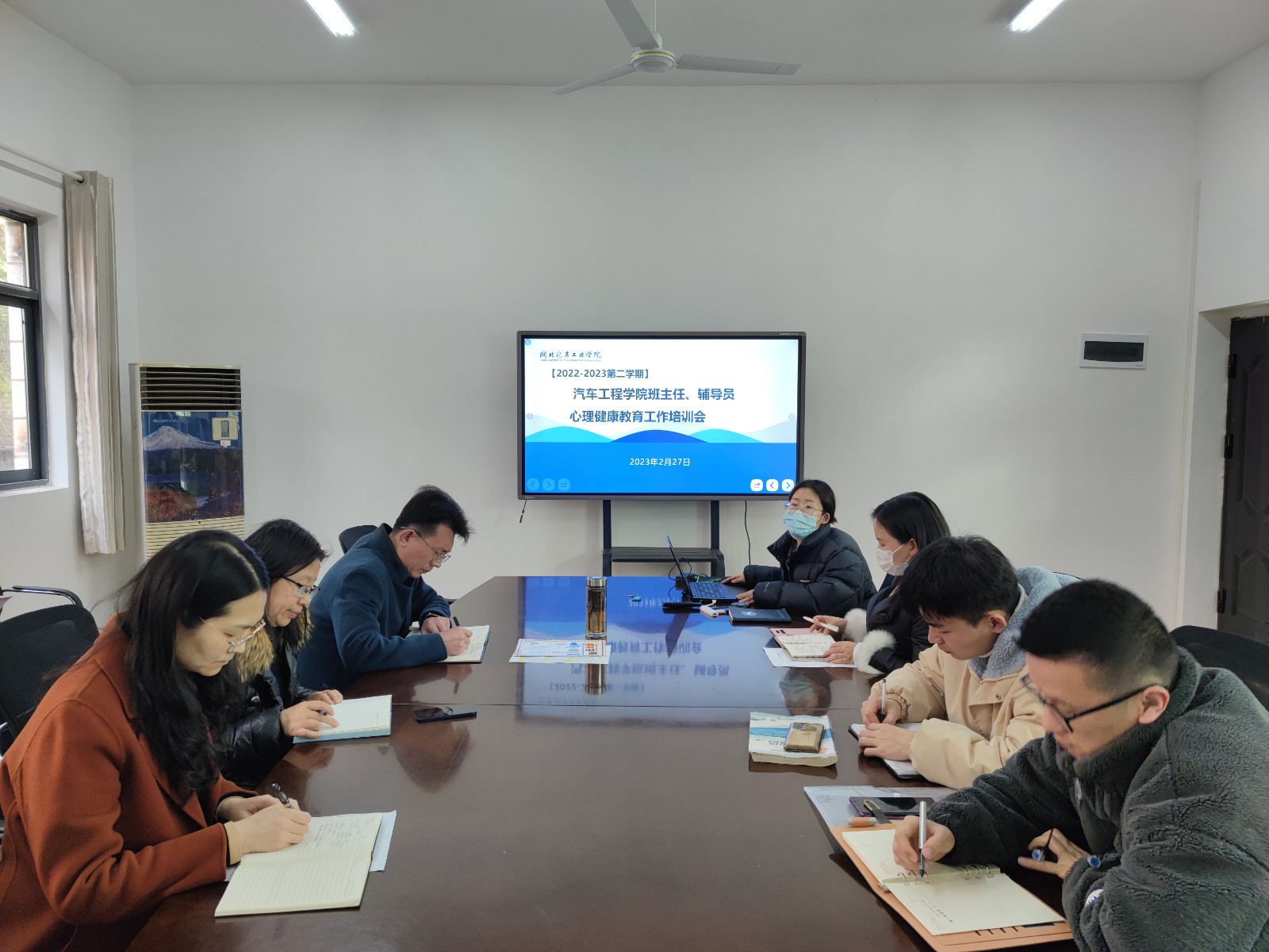 于二楼资料室召开了班主任、辅导员心理健康教育工作培训会,分党委书记李秀峰、副书记杜昕俊及全体班主任、辅导员参加会议。会议由学工办主任胡霄寒主持。