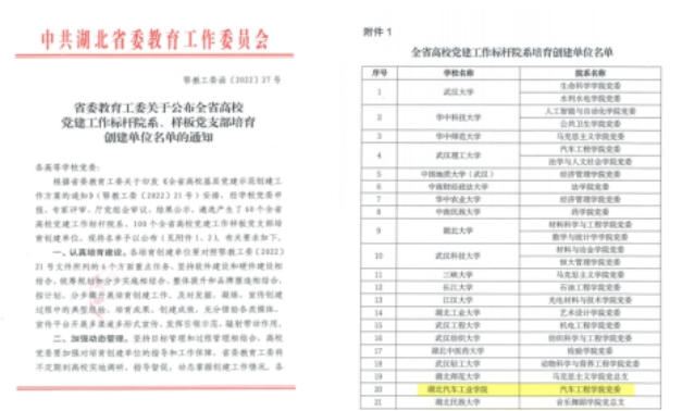 2022年7月,学院分党委又入选湖北省首批高校党建工作“标杆院系”立项建设单位,