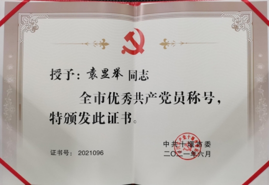 党员博士袁显举勇于担当、甘于奉献,做教学科研双向实践者,2021年获评十堰市“优秀共产党员”。