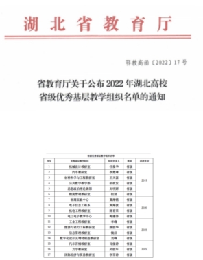 2022年分别荣获湖北省第六届高校青年教师教学竞赛二等奖、湖北省高校教师教学创新大赛三等奖。