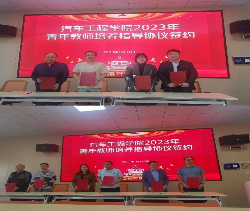 在综合实验楼多功能会议室举行了“2023年青年教师培养指导协议签约”仪式。仪式由院长胡明茂主持,汽车学院全体教师参加活动并见证了签约仪式。