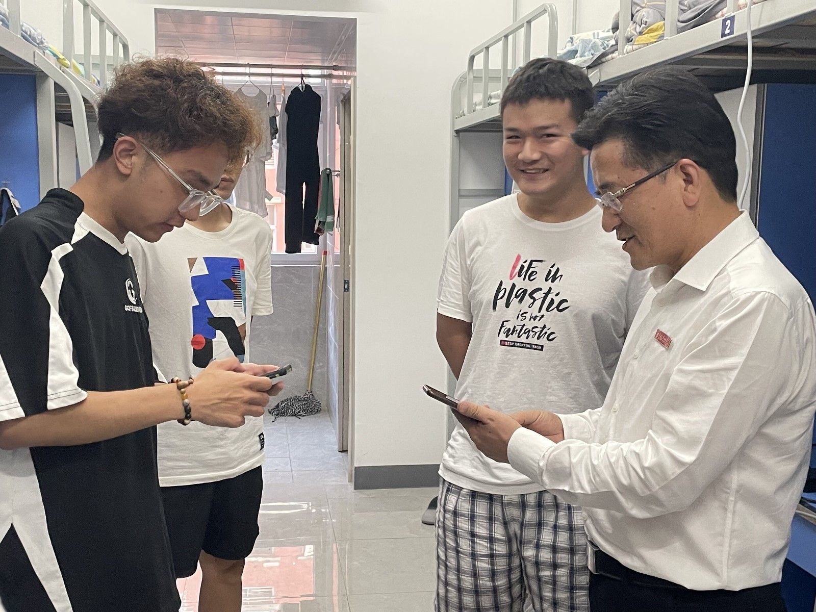 9月13日,迎新工作刚刚落下帷幕。从这一天开始,学校领导集中两三天时间前往各自联系学院的新生宿舍,与同学们拉家常、聊近况、话学业,帮助新生更好更快地融入新集体和新环境,送上来自学校的第一份温暖和关怀。
