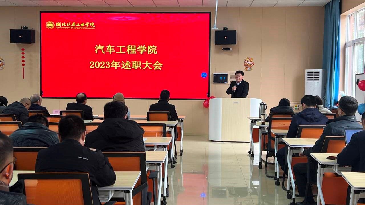 在学院职工之家举行2023年度教师述职大会,全体教职工参加,会议特邀研究生院督学马庆卫、教学督导常治斌作评审专家。