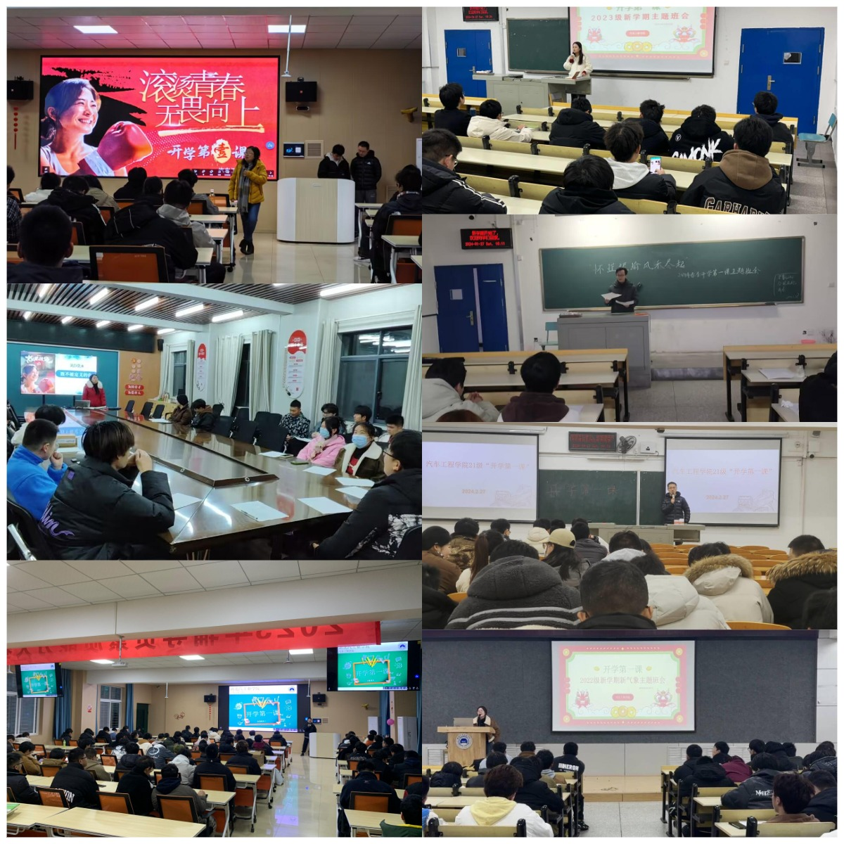 各年级辅导员,班主任向同学们致以新学期的问候和祝福,与学生交流分享了寒假生活,并围绕“十防”教育、社会主义核心价值观教育、传染病防治、心理健康、期初补考、营造优良学风班风等五个方面开展宣讲,引导学生在新学期、新生活、新起点、新目标更好的开展学习。