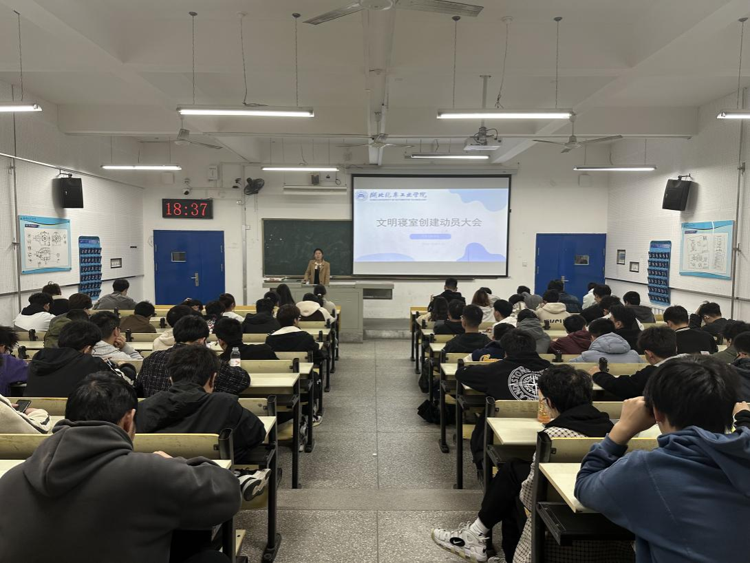 学工办主任胡霄寒做文明安全宿舍创建动员讲话,强调了开展此次活动的要求、目的和重要性,结合日常生活说明了建设文明安全宿舍的必要性,并对创建活动提出三点要求,一是参与创建活动的辅导员、学生干部、寝室长、同学落实落细创建内容,把每一项措施落到实处;二是强化卫生、安全意识,强调对于违反学校规章制度的行为“零容忍”的态度;三是呼吁参会学生做文明安全宿舍创建活动的传播者、建设者和监督者,创建“文明整洁、安全有序、学风优良、和谐奋进”的学生宿舍。