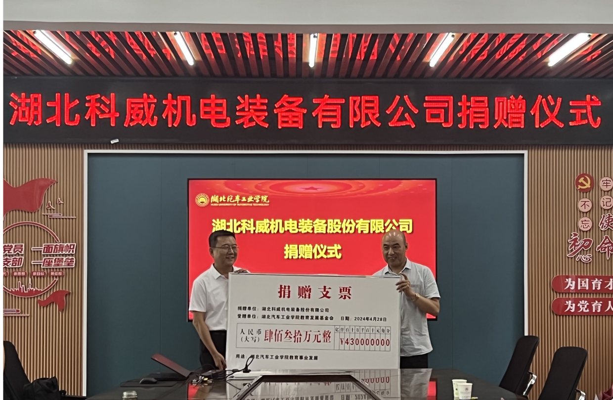 会议室举办了湖北科威机电装备股份有限公司向学校捐赠430万元的捐赠仪式。湖北科威机电装备股份有限公司总经理王政峰、做爱片