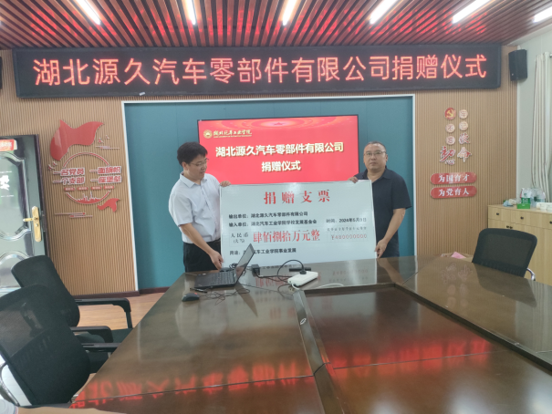 二楼会议室举办了湖北源久汽车零部件有限公司向学校捐赠480万元的捐赠仪式。湖北源久汽车零部件有限公司总经理陈宏煌、做爱片