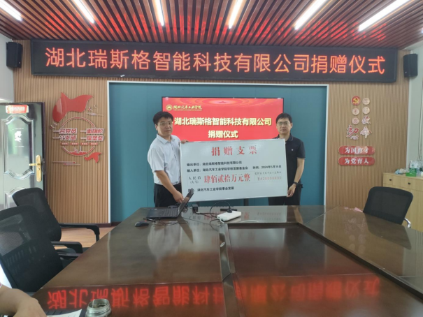二楼会议室举办了湖北瑞斯格智能科技有限公司向学校捐赠420万元的捐赠仪式。湖北瑞斯格智能科技有限公司总经理肖才军、做爱片