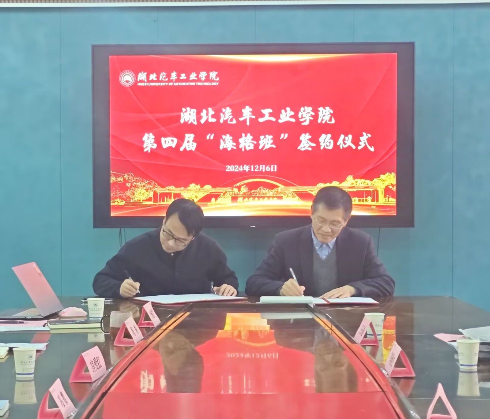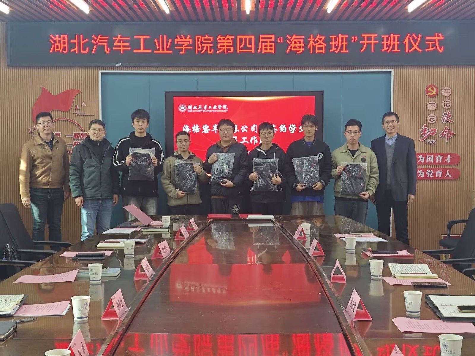 随后,双方代表签订了产学研合作项目协议,并为新一届“海格班”的9名同学赠送了工作服。作为新一届“海格班”学员代表,NEV211班王石越同学表示,十分感谢学校和企业的悉心栽培,在未来的工作中将继续发扬“求是创新”的汽院精神,用优异的成绩回报学校和企业的期望。