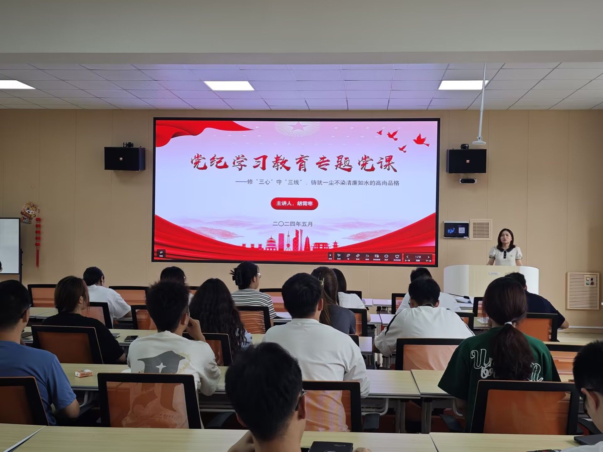 在党课过程中,胡霄寒还通过分享典型警示案例和身边先进事迹,引导大家深刻认识到廉洁自律的重要性和必要性。她鼓励大家要以身作则,自觉接受监督,让清风正气充盈在每一个角落,以实际行动诠释做爱片