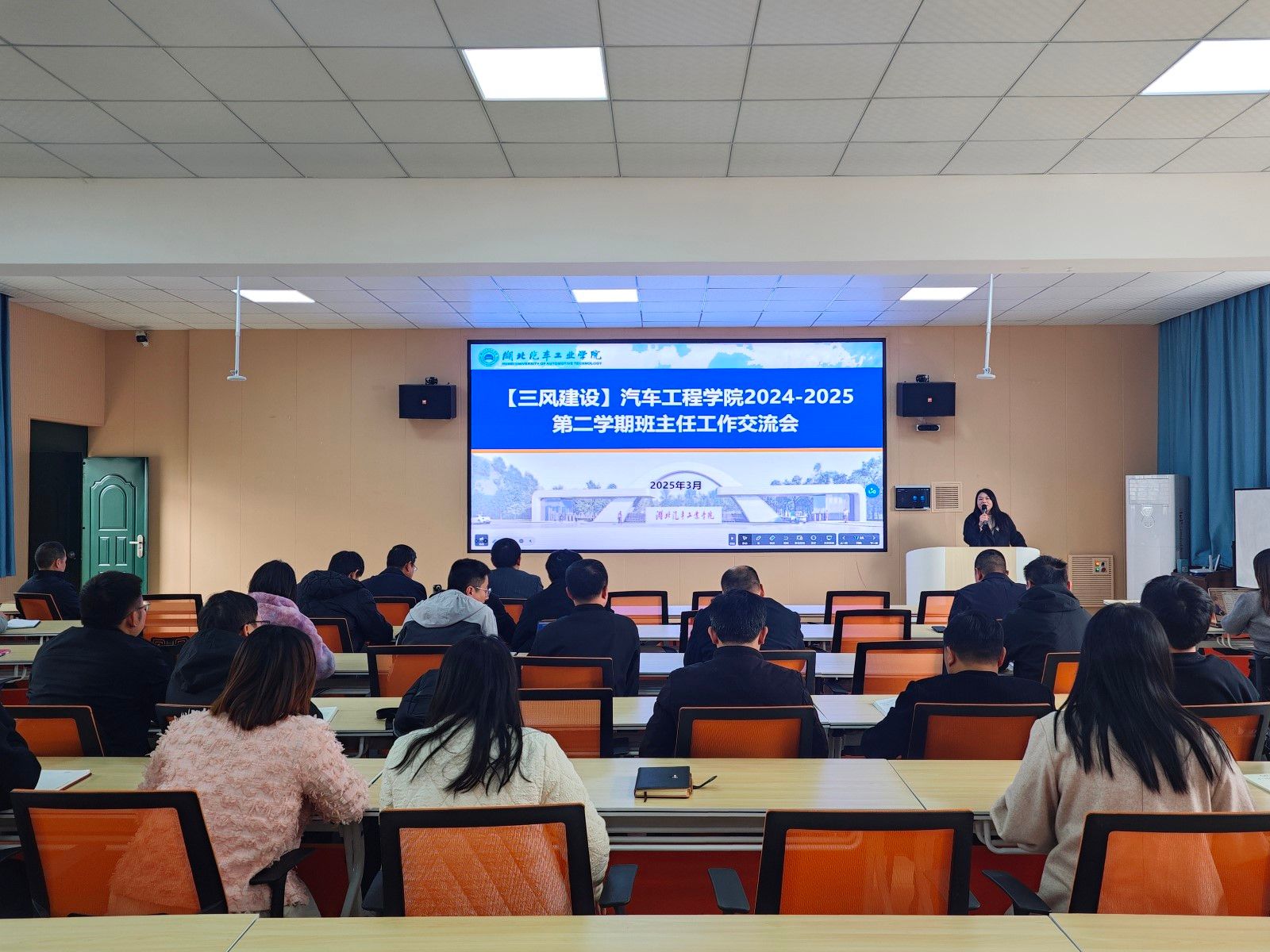 会上,学院邀请两位优秀班主任代表分享了各自的“独门秘籍”。智车242班主任张华以“班主任的温度”为主题,结合班级管理实际案例,从班干部培养、学风建设、心理关怀等方面分享了“全员参与、分层管理”的带班模式,提出了“个性化帮扶+正向激励”的管理机制。车服Z224班班主任、有着9年辅导员工作经历的“全国优秀”教师胡霄寒以“班主任工作的三个关键词:温度、挑战、行动”为主题,通过“双向奔赴”的温暖情感回应“00”后学生个性化需求,化解“躺平”“内卷”等时代考题,并用“三个工具箱”推动学生从“被动管理”转向“自主成长。”,为班主任们提供了宝贵的经验。