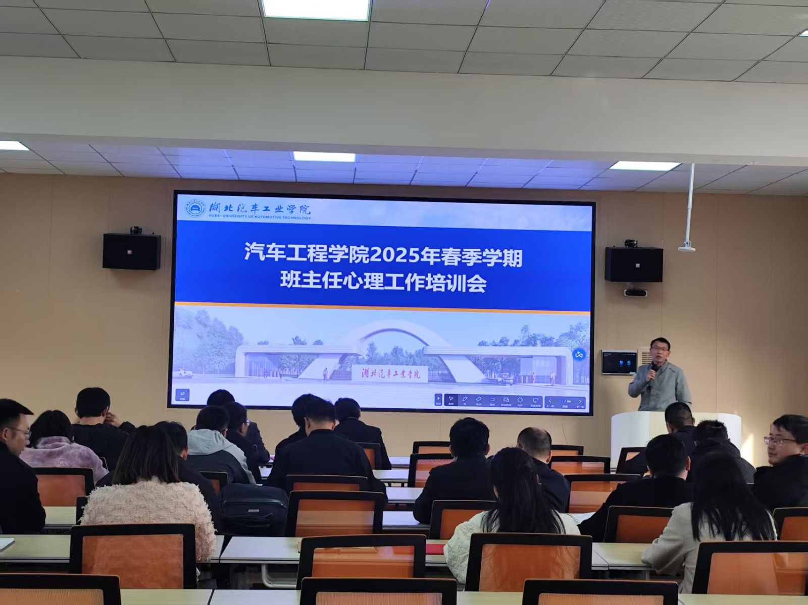 会上,学院心理健康教育专责辅导员刘光辉老师,围绕当前大学生心理健康形势、常见心理问题的早期识别与应对、班主任在心理育人体系中的角色定位与工作职责等核心内容,进行了深入浅出的讲解。他还结合学校心理健康教育中心的最新文件精神,重点解读了学生心理健康动态排查与危机干预的工作规范与要求。会议强调,班主任作为学生思想动态和心理健康的“第一知情人”和重要守护者,需增强工作敏感性与责任感,密切关注学生心理状况,及时发现并科学应对潜在心理危机,为学生提供精准有效的支持。