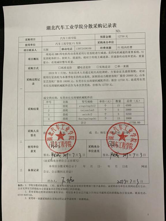 F1车队分散采购记录表(电子水泵、滑动离合器)