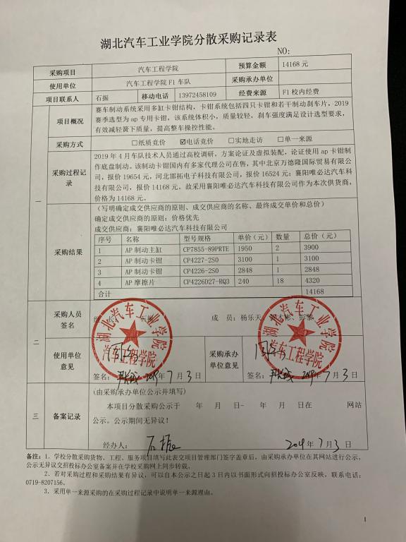 F1车队分散采购记录表(电子水泵、滑动离合器)