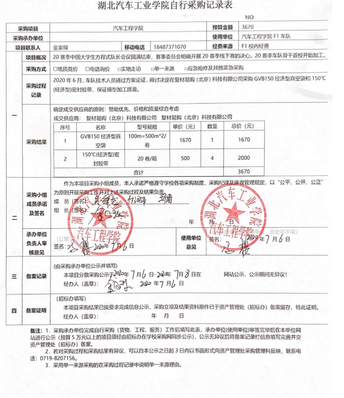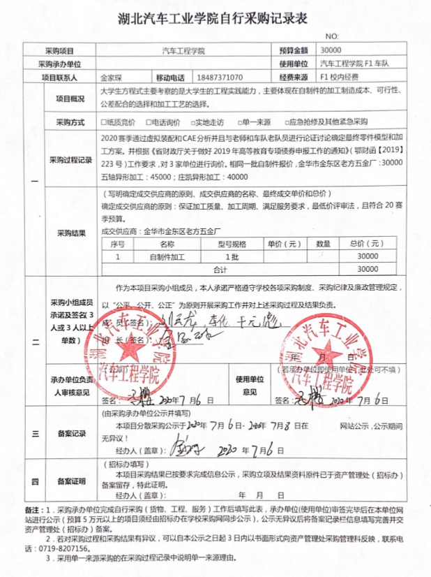 东风HUAT自行采购记录表公示