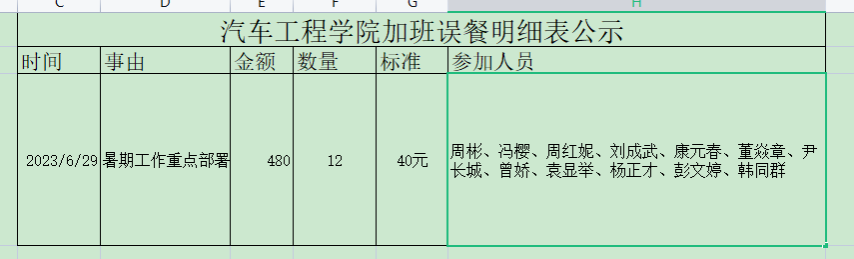 车院加班误餐明细表公示